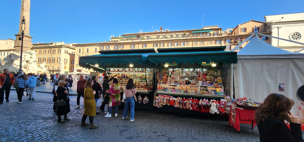 나보나 광장은응접실처럼 아늑한 분위기다. 남북으로 길쭉하게 생겨 건물들에 둘러싸여 있으며 베르니니의 작품 4대 강 분수가 그 아름다움을 더 하고 있다.