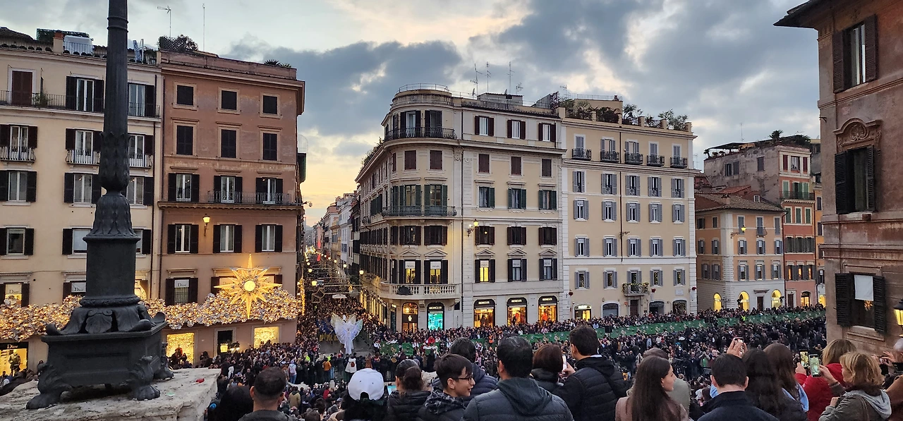 로마의 휴일 앤 공주님처럼 젤라토를 하나 들고 스페인 광장에서 사진을 찍고 싶었지만 불가능했다. 관광객에 퍼레이드를 보려는 인파까지 겹쳐 말 그대로 인산인해였다. 인파를 헤집고 스페인 계단을 오르자 트리니타 데이 몬티 성당이 있다. 입장해서 성당내부를 관람하고 나오자 노을이 지는 하늘과 로마 시내가 눈에 들어왔다. 황홀한 순간이다.