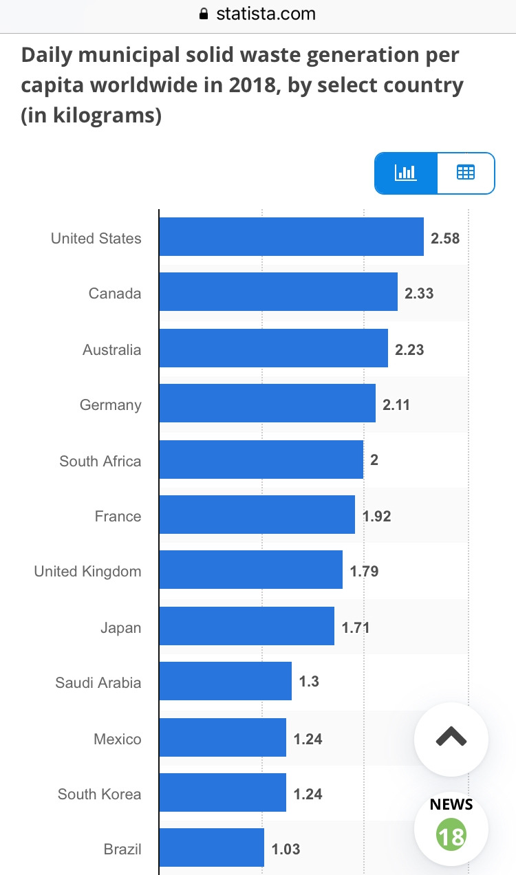 (놀랍게도 소위 G7이라 불리는 나라의 시민들은 매일 어마어마한 양의 쓰레기를 배출하고 있다. 물론 사람마다 차이는 물론 있겠지만, 통계가 말해주듯 미국은 세계 최대 쓰레기 배출 국가 중 하나이다. 출처 : statista.com)