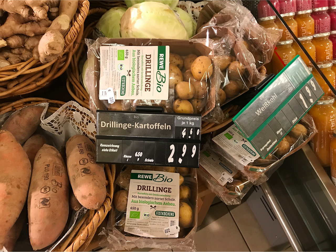 백화점에 입점한 레베 Rewe 뿐 아니라 아니라 식재료를 주로 판매하는 보통의 마트에서도 유기농 마크가 있는 제품을 쉽게 볼 수 있다. 거의 모든 품목에 유기농 제품이 다 있을 정도다.