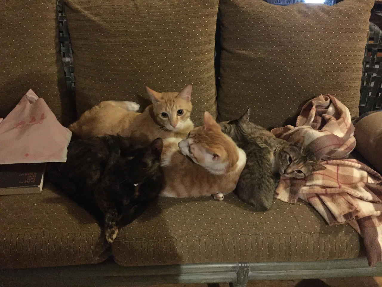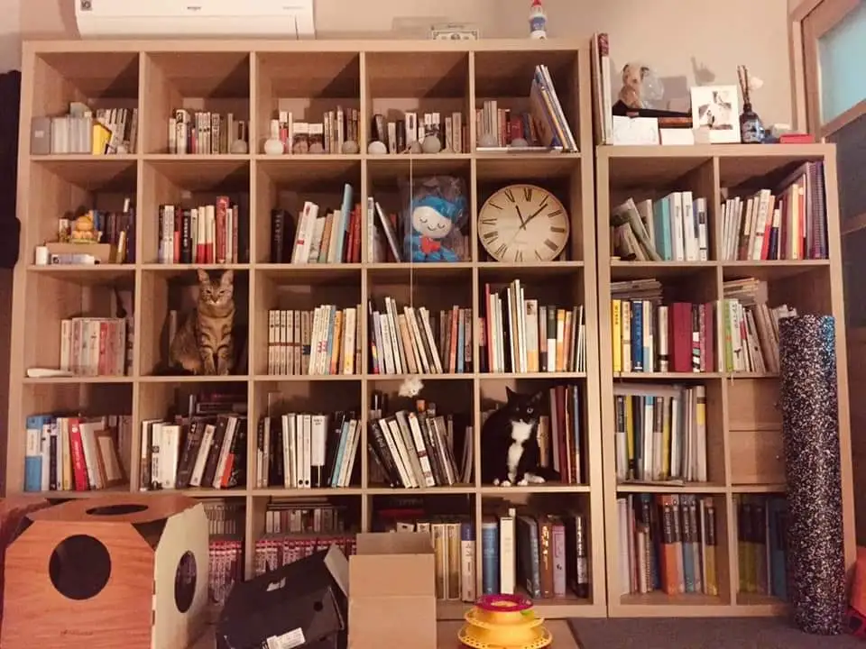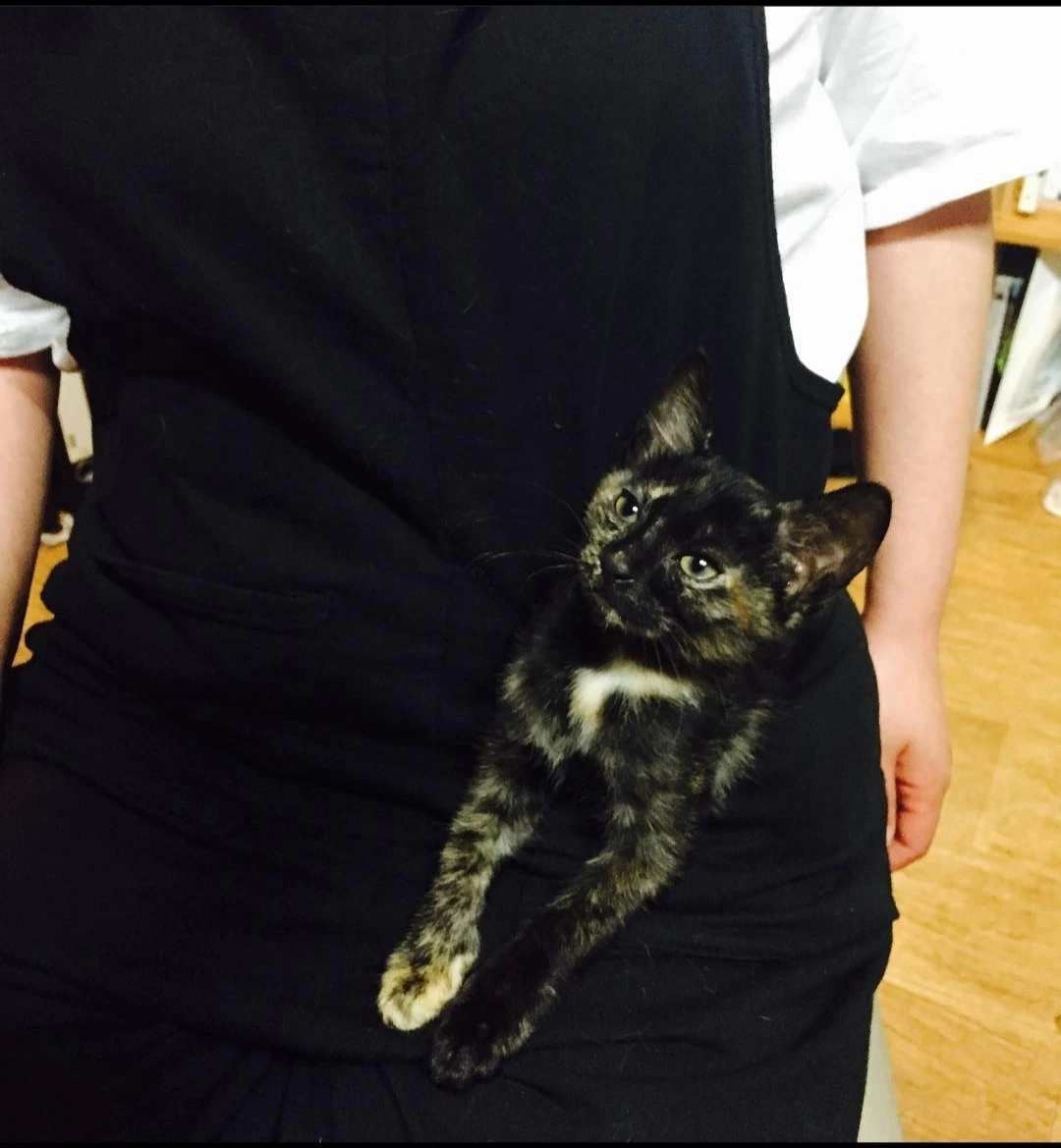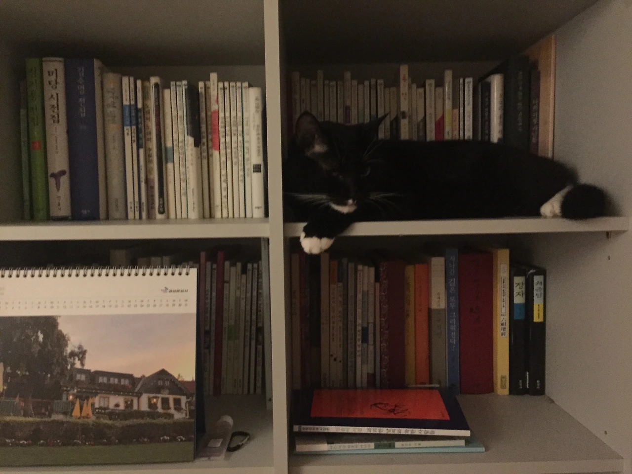 회사에 있는 시간이 길어지며 밀이 혼자 있는 게 괜찮을까 걱정을 오래 하던 중, 후배로부터 고양이가 임신해 새끼들이 많다는 이야기를 들었습니다. 당시 통영에서 책방을 하던 후배네에 이전에도 간 적이 있었는데 와 이 집은 정말 고양이를 위한 곳이다 싶을 정도로 온 곳을 고양이들이 점령하고 있었습니다. 아직 중성화시키지 않은 외출냥들이 아이들을 낳게 되어서였는데요. 책장 사이를 오가는 아기 고양이들을 보며, 그날 후배네 집에서 술을 마시고 있을 때 아기 고양이 한 마리가 멜빵바지 주머니 속으로 들어왔습니다. 수지라는 이름의 이 고양이는 그때만 해도 아가였는데, 후배 말에 따르자면 그때 멜빵바지 주머니 속에 들어간 사진이 수지의 최고 인생샷이라고 하더군요.
