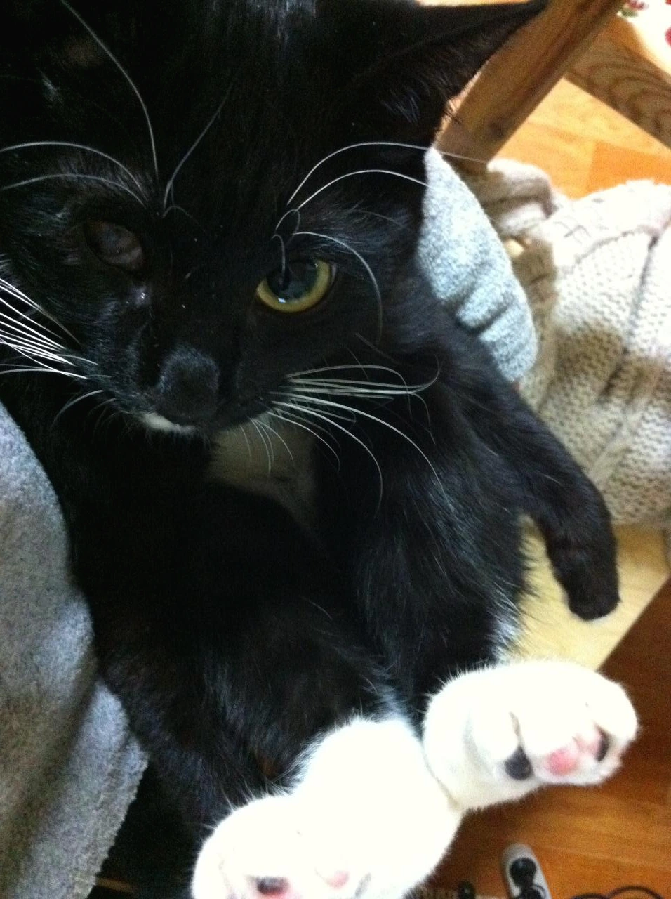 밀은 영양실조 상태였다가 병원에서 영양을 회복했으나 입양갈 만한 곳이 없어 계속 병원에 있게 되었습니다. 밀의 병원비를 지불해주신 분은 집에 아픈 고양이가 여러 마리라 어린 고양이를 데려올 수 없었고 여기저기 입양처를 알아봤으나 아무래도 한 쪽 눈이 아프다보니 입양을 원하는 사람이 없어 2달 동안 밀은 병원에 있었습니다. 그러다 제가 고양이를 기르고 싶어 한다는 얘기에 저에게 임시보호를 맡아달라 해, 1달 동안 밀을 맡기로 하고 밀이 집에 왔습니다.