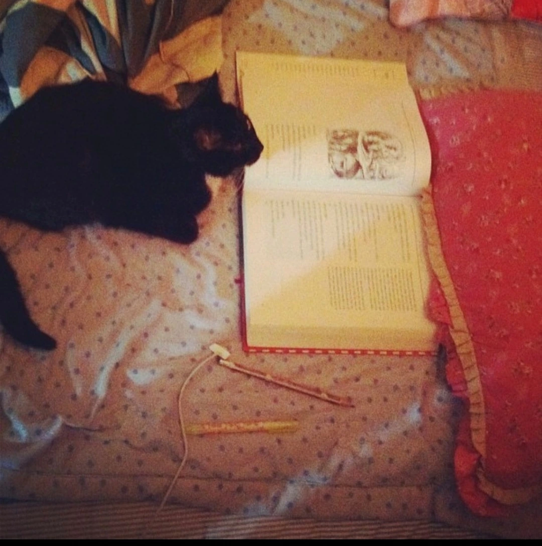 책을 보다가 화장실에 가면 그게 뭔가 궁금해서 나처럼 책 앞에서 책을 보는 척 하기도 하고 출장 갈 때 가지고 가던 배낭을 쌀 때면 가방을 물어뜯어서 싫음을 표현하기도 해 이 아이 마음 안에 많은 게 있구나 알 수 있었습니다. 안 좋은 일이 있어서 집사 혼자 침대에 처박혀 있으면 침대에 와서 미간을 핥아주기도 하였습니다.