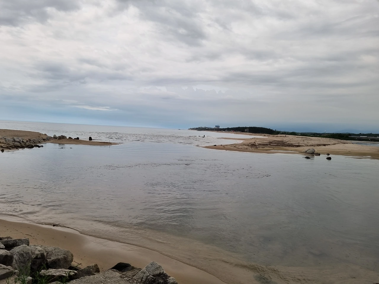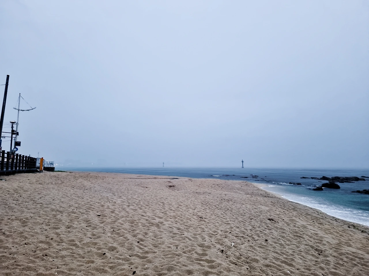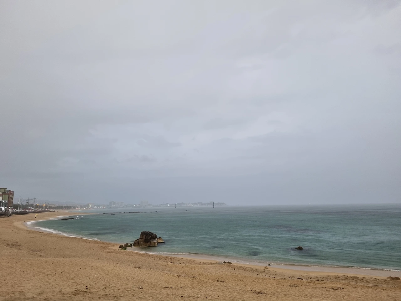 예전에는 저기 멀리 바다가 있을 것 같아, 하던 곳들에도 바다는 없어서, 아, 이 기분은 뭘까 했는데, 이제는 아, 여기를 돌면 바다가 있을 것 같아, 하는 곳에 바다가 있습니다. 방파제에 낚시 하는 사람들이 있고요, 저 방파제를 한번도 안 가봤는데 지금은 짐이 있으니 다음에 가봐야지, 하며 돌아서고 얼마 지나지 않아 비가 내리기 시작했습니다. 비를 본 것과 바다를 본 것이 거의 같은 순간일 정도로, 이런 순간에는 리 오스카의 ‘비포 더 레인’이 나와야 하는 게 싶게 빗소리가 굵었고, 다행히 예보를 보고 나와 우산을 가져왔기에 우산을 펼쳐들고 바다 옆 데크에 들어섰을 때 바닷가에 있던 사람들이 어딘가로 재빠르게 피신하고는, 바다에는 노란 파라솔 한 채 아래 사람이 있을 뿐 고요했습니다.