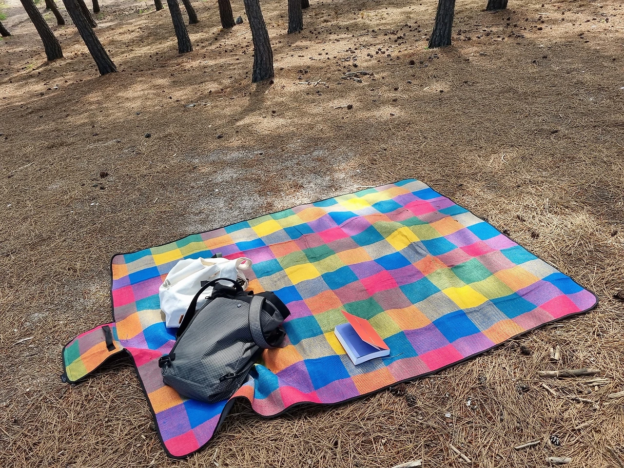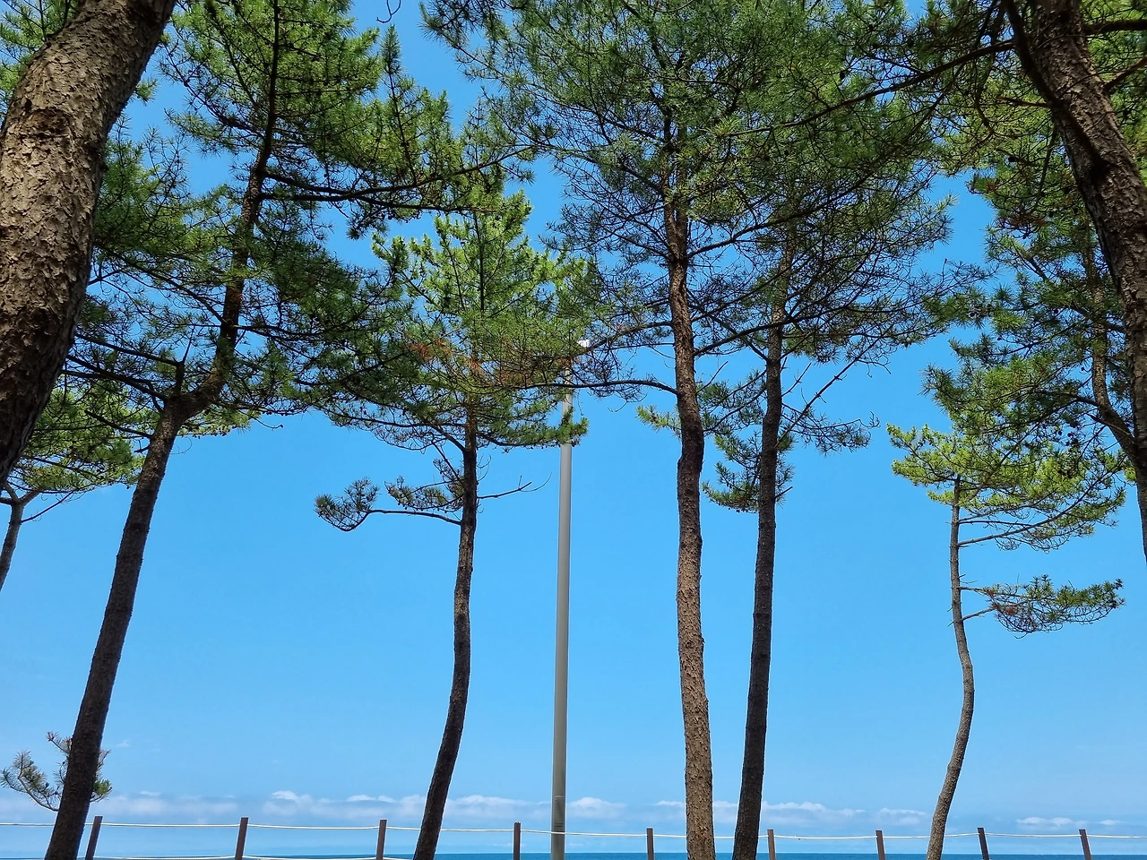 어젯밤 결정하기로는 파라솔을 빌려 바닷가에 앉아서 책 보다 물에 잠깐 들어가기도 하는 거였는데, 장마철라는데도 날이 맑아 바다에 잠깐씩 몸 담그다 나와서 책 보려고 했는데, 파라솔을 빌릴 수 없게 되었습니다. 계획을 변경하더라도 오늘은 밖에 나가야지 하고 생각한 데가 솔숲이 있는 해변이었습니다. 아직 알려지지 않아 평일에는 비교적 한산한 해변에서 두 달 즈음 전에 텐트를 치고 자기도 했습니다. 거기라면 볕을 피해 바다도 보고 책도 읽기 좋겠다 싶어 두 시간 반 정도 해변 앞 솔숲에 돗자리를 깔고 앉아 책을보고 커피를 홀짝이다 왔습니다.