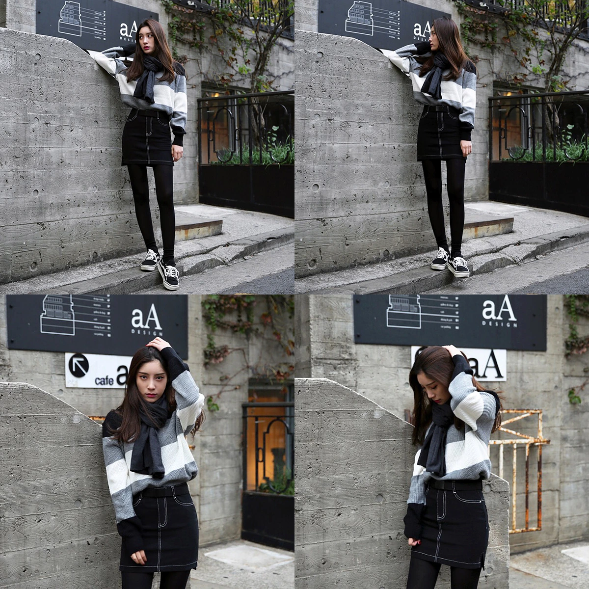 H라인에 깔끔한 블랙으로 전체적으로 모노톤으로 코디해주면 화려한 느낌보단 세련된 코디를 완성할 수 있다. 전체적으로 밋밋해 보인다면 스카프로 포인트를 주는 것도 좋다. 이때 스카프 또한 모노톤으로 매치해주는 센스를 발휘하자.