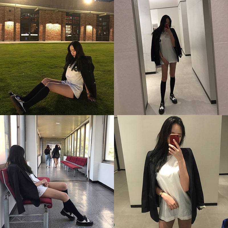 니삭스는 여름에 입는 핫팬츠를 가을까지 입을 수 있게 하는 효자 아이템 이라고 말할 수 있다. 초가을 블레이저와 박시한 흰 티셔츠 그리고 니삭스만 있으면 굳이 옷을 사지 않더라도 여러가지 코디가 가능하다.