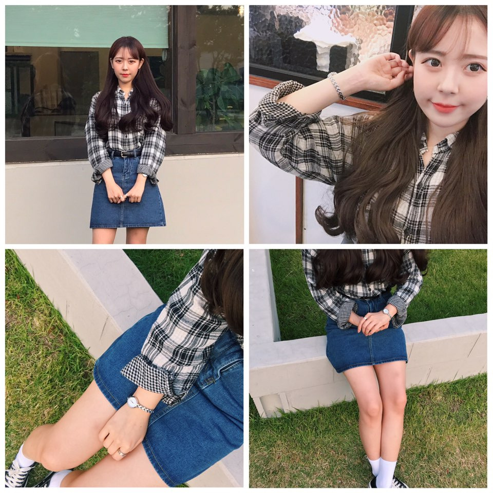 체크 남방과 청치마와 코디한다면 여성스러움과 귀여움을 동시에 어필할 수 있다. 그래서 이렇게 코디하면 2가지 매력을 보여줄 수 있다.