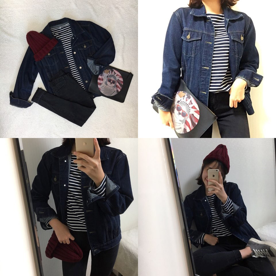 딥한 컬러감의 생지데님으로 어디에나 매치하기 좋은 데님자켓. 여유 있는 품, 적당한 기장감으로 팬츠를 착용하여 데일리하게 매치하기 좋다. 매년 유행 없이 예쁘게 입어질 데님 자켓 스타일링을 살펴보자.