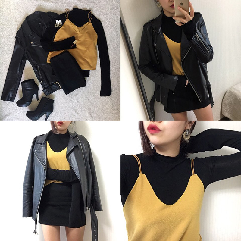 보이핏 라이더 자켓으로 편안함과 스타일리시함 두 마리 토끼를 잡아보자. 이너 아이템은 루즈한 아우터와 상반되게 타이트하게 착용하길 추천한다. 전체적인 색상인 블랙과 옐로우의 컬러 조합으로 위트있고 캐주얼하게 연출해보자.