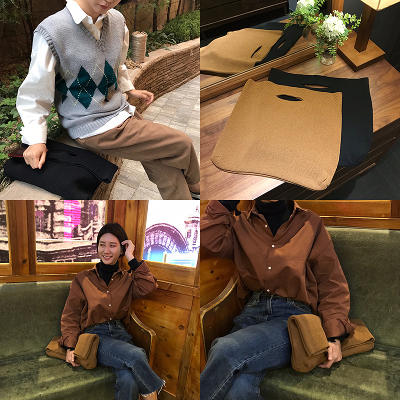 니트 특유의 편안한 무드가 느껴져 데일리하게 들기 좋으며, 유연한 소재감으로 크기에 비해 여유 있는 수납공간과 수납했을 때에 자연스러운 타입으로 만들어졌다.
