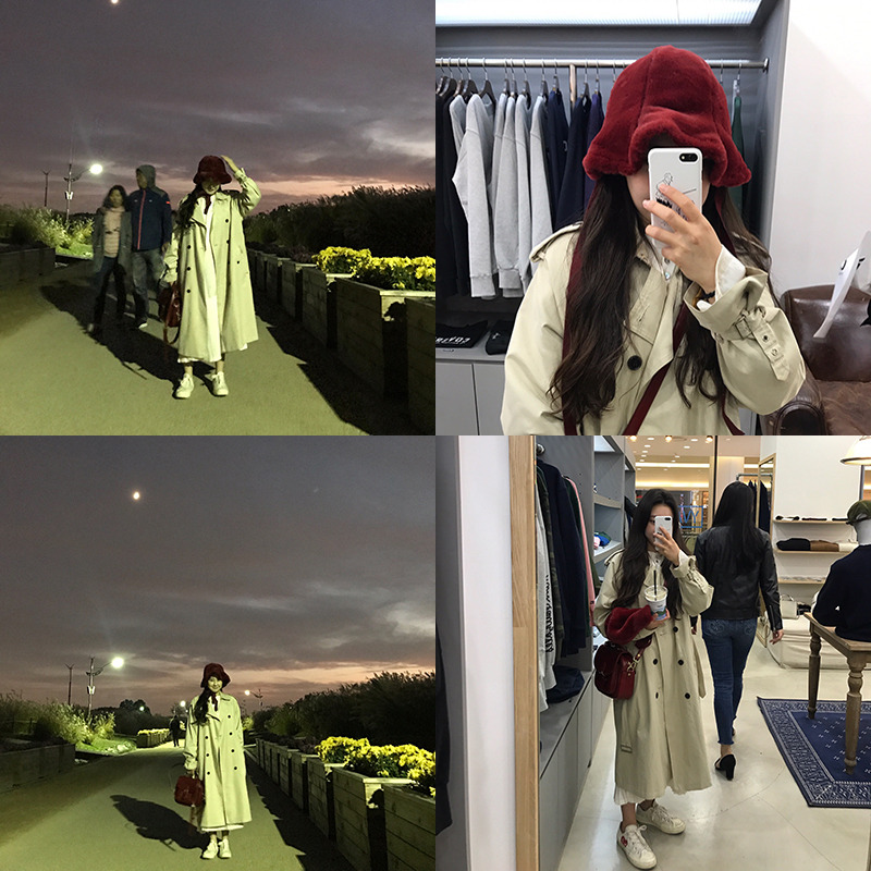 사람 체형마다 다르고 선호하는 핏감은 다르겠지만 조심스레 던져보는 지금은 오버사이즈의 시대! 사실 트렌치코트의 핏으로 스타일은 완성이겠지만 함께 코디한 모자처럼 주변 악세사리를 이용하여 코디를 하면 얼마나 더 멋질까!