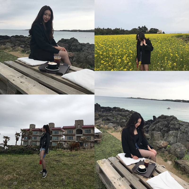 정말 너무나 기본 중 기본인 검정 자켓! 자칫 잘 못 하면 일명 모나미룩 처럼 너무 기본처럼 보일 수 있는 자켓으로 반전처럼 보일 수 있게 망사 스타킹과 함께 코디해봤다.