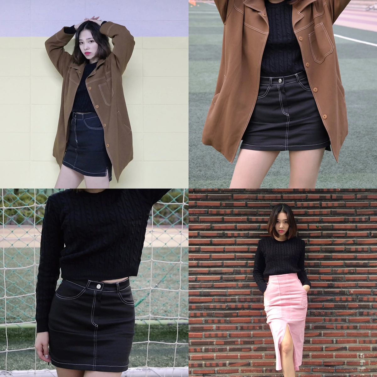 그래서 미니스커트, 롱스커트, 쇼트 팬츠, 롱 팬츠 등 그 어디에도 예쁘게 코디해서 입을 수 있는 적당한 기장의 크롭 니트를 추천한다.