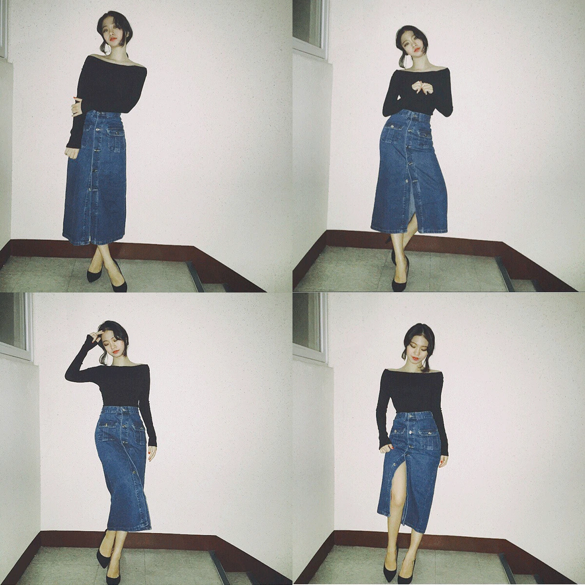 그중 데님 미디스커트와 함께 한다면 이번 가을에 패션 피플이 되는 건 크게 어렵지 않을 것이다. 미디스커트와 블랙의 조화에서 블랙은 스타일링의 성공확률을 높여주기 때문에 패션초보자라도 쉽게 연출 할 수 있다는 큰 장점을 가지고 있어 많은 사람들이 평소에 자주 입고 다니는 코디다.