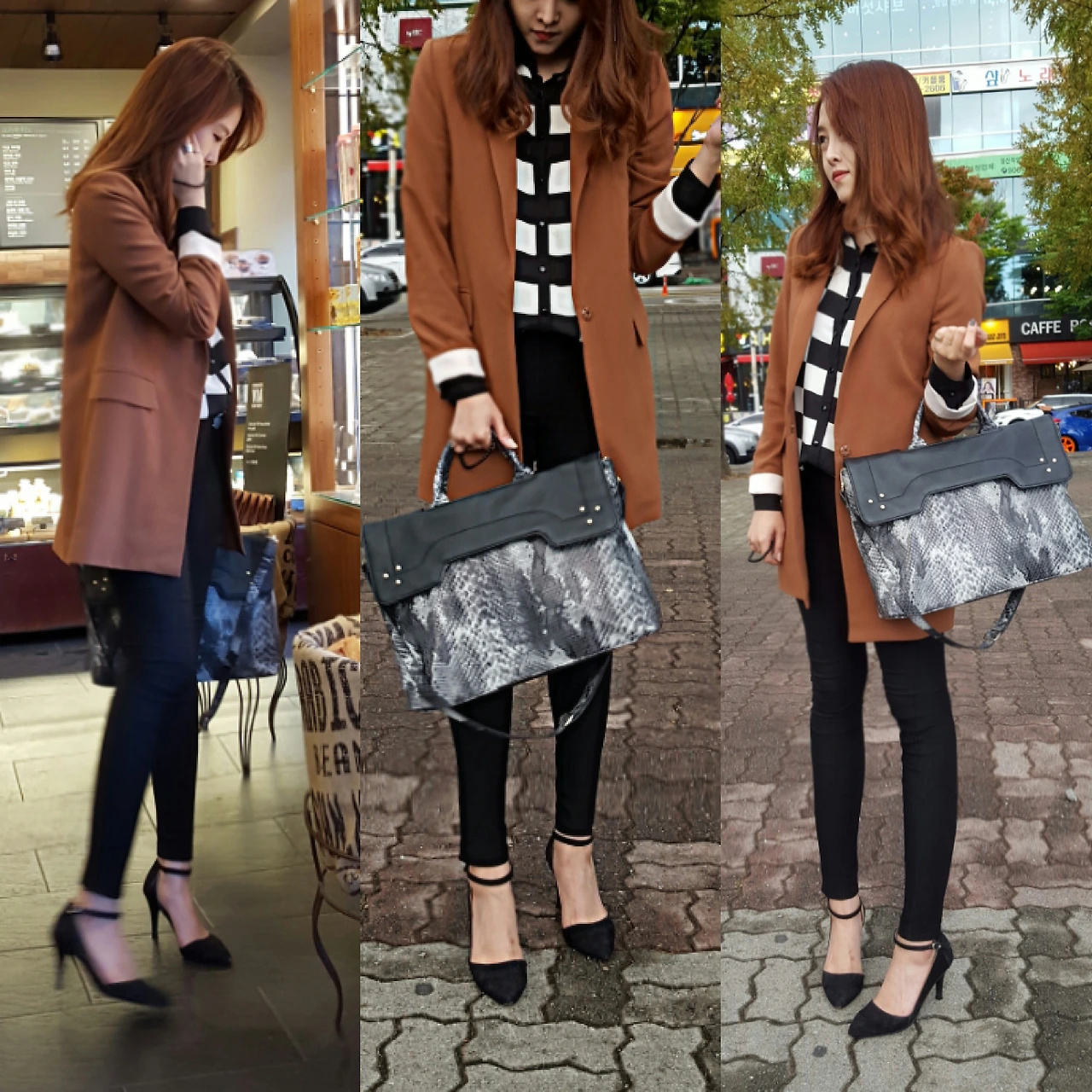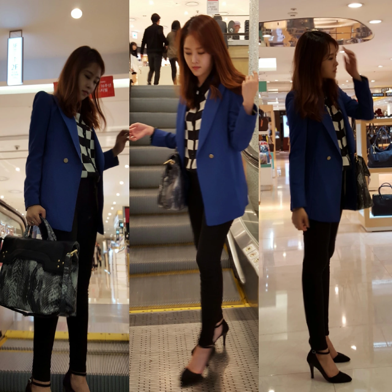 간혹 남성들 중에 블랙 정장을 입은 여성들에게 섹시함을 느끼는 사람들이 있다. 또한 카리스마 있는 커리어우먼의 분위기까지 연출이 가능해 블랙 재킷으로 다양한 느낌을 낼 수 있었으면 좋겠다.
