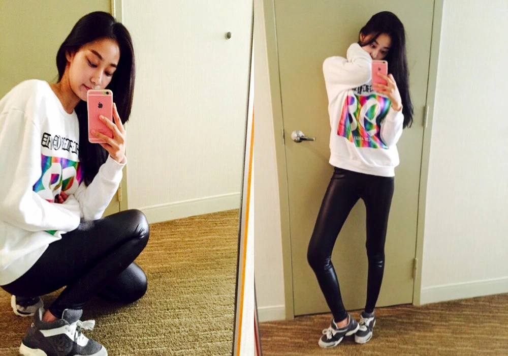 밝은 상의 맨투맨은 기본적으로 어두운 하의를 매치하는 것이 축소 색으로써 조금 더 매끈하고 슬림하게 보이는 느낌이 있으므로 코팅진이나 어두운색의 레깅스, 블랙진을 입으면 어울리는 코디를 할 수가 있다.