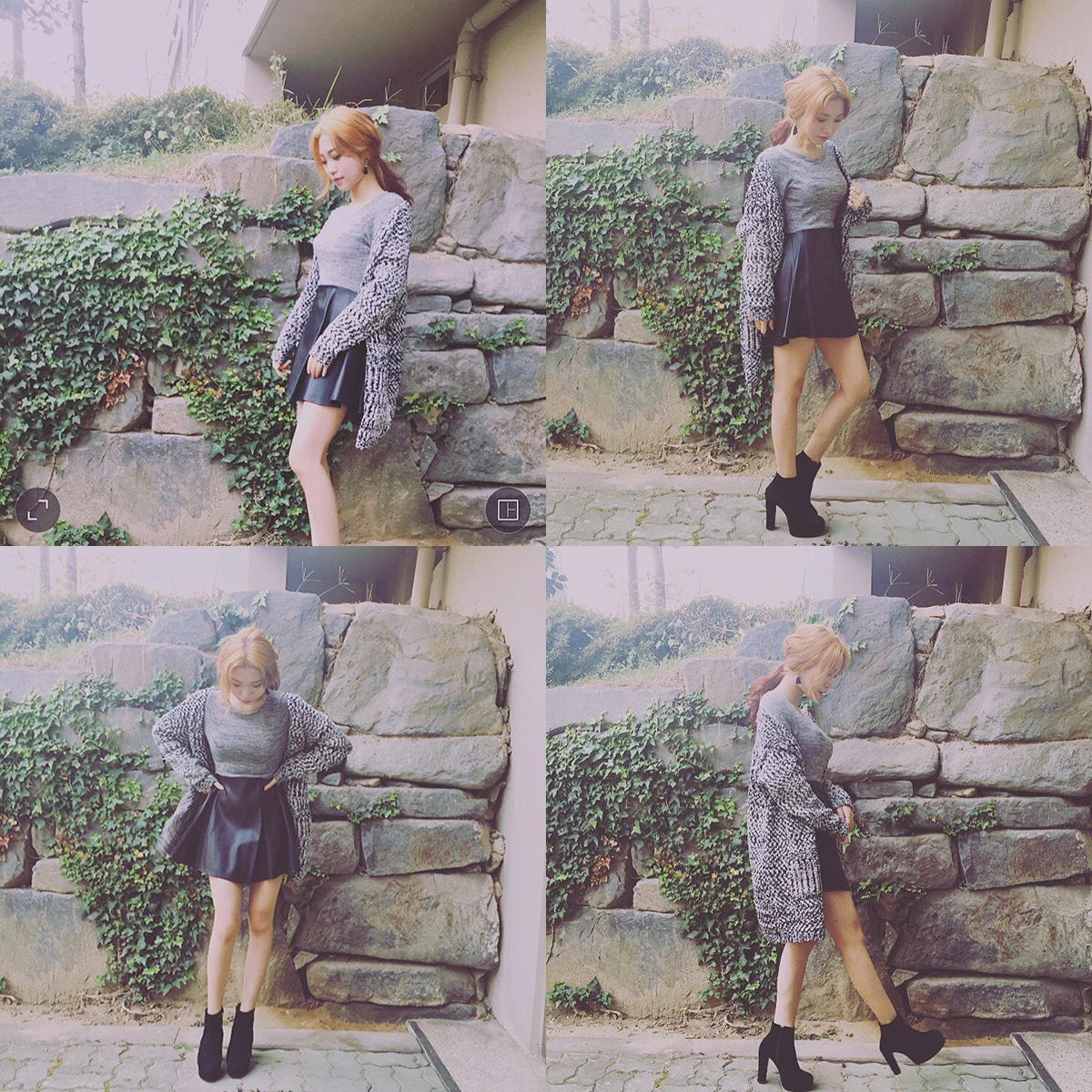 여기에 블랙 힐과 함께 함으로써 다리가 길어보이게 했고, 포인트 될 수 있는 액세서리와 미니 크로스백으로 더욱 멋스럽게 연출했다.