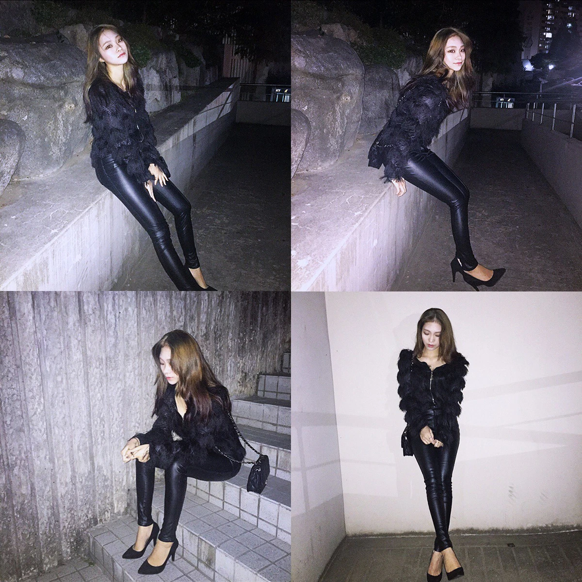 상의는 시크함을 나타내는 퍼 느낌의 재킷과 하의는 기본적인 블랙 스키니도 충분하지만 시크함을 극대화시키기 위해 가죽 스키니로 연출하는 것을 추천한다. 여기에 심플한 액세서리도 함께 연출된다면 훨씬 스타일리쉬한 데일리 룩을 완성시킬 수 있다.
