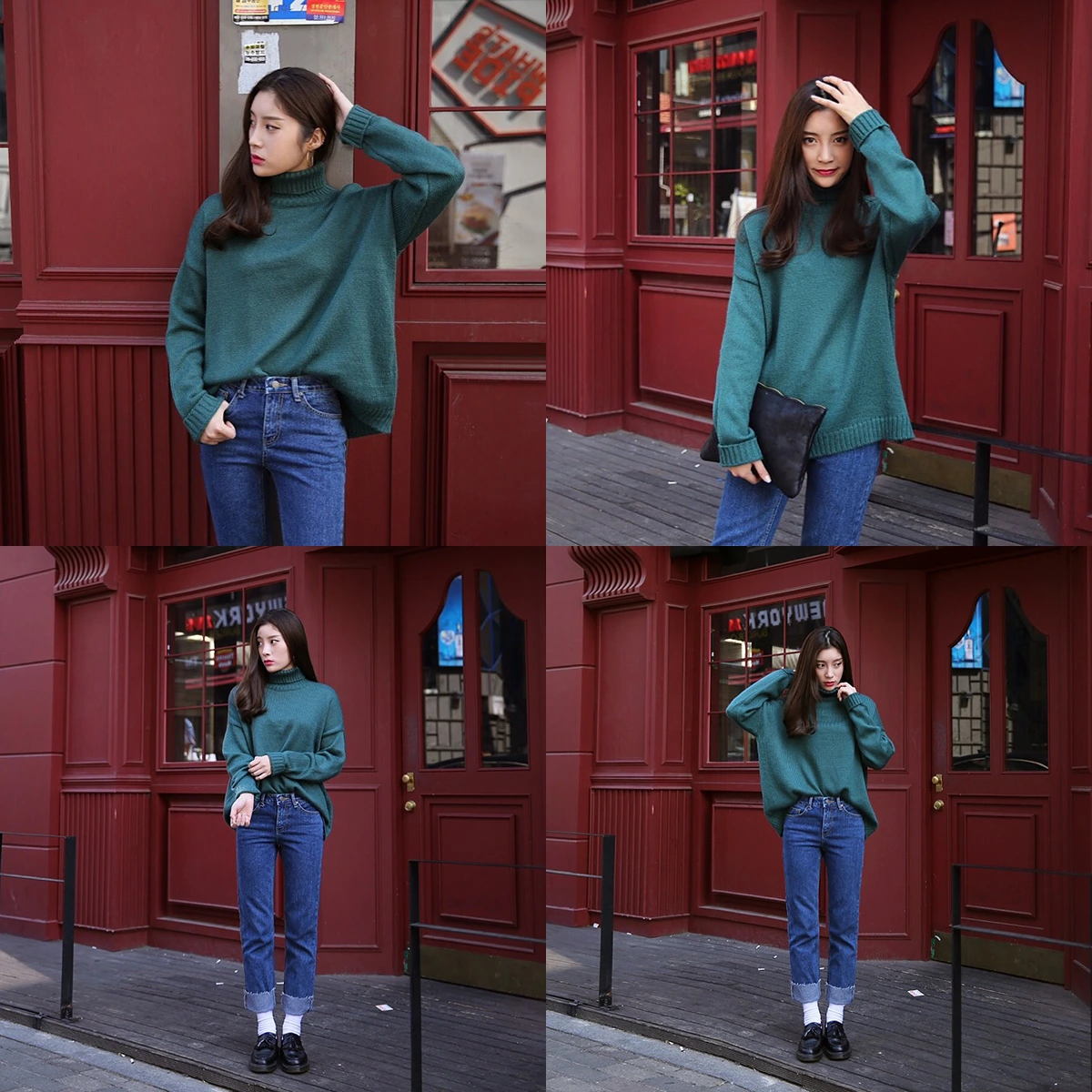 보온성과 스타일 둘 다 잡을 수 있는 목폴라는 와이드 진과 로퍼를 이용해 여성스럽지만 심플하면서 발랄해 보이는 데일리 룩으로 연출 가능하다. 얇은 목폴라 티와는 달리 두꺼운 니트는 목을 넓게 감싸주면서 턱 까지 올라오기 때문에 얼굴을 작아보이게 할 수 있는 장점이 있다.