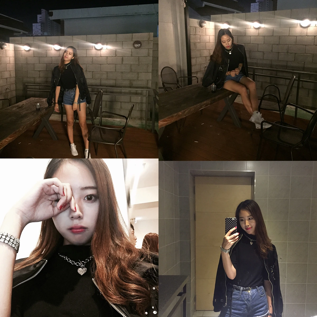여기에 체인목걸이와 팔찌로 포인트를 줘 자칫 무난할 수 있는 블랙 반 폴라넥 상의에 밋밋함을 없앴다. 데님쇼츠 뿐만 아니라 데님스커트 또한 블랙의 단조로움을 해소할 좋은 아이템이므로 각자 가지고 있는 베이직 아이템을 활용하는 것을 추천한다.