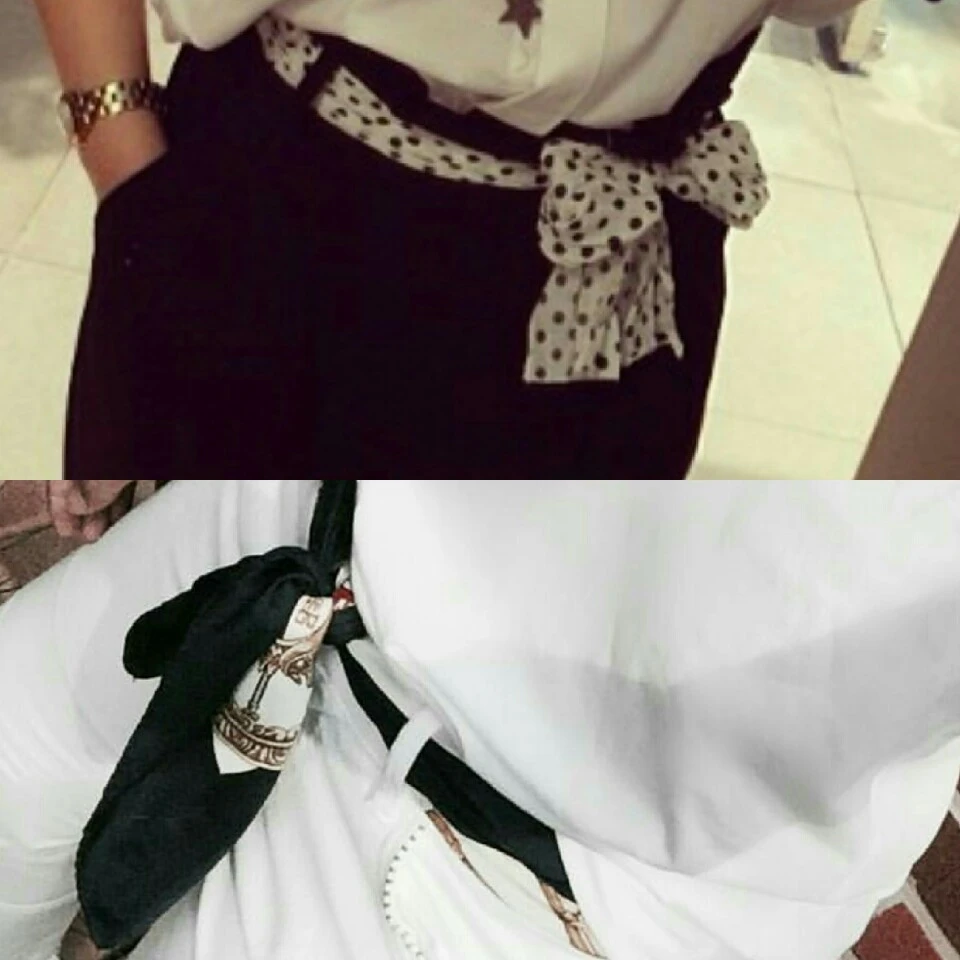 <허리띠로 포인트와 실용성을 한번에>. 긴 스카프의 경우 돌돌 말아서 허리띠처럼 착용한다면 한층 더 느낌 있는 패션이 될 수 있다. 이때 상의와 하의가 같은 톤의 컬러라면 스카프허리띠가 더욱 부각되어 패션 아이템으로 최고가 될 것이다.