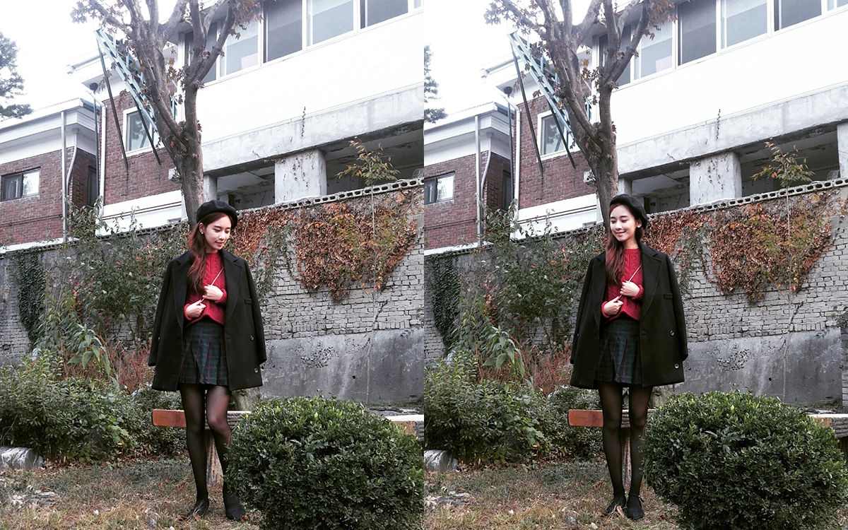 이번 시즌 트렌드 컬러인 버건디 컬러의 니트 상의와 체크무늬 테니스 스커트를 매치했다. 매치함으로써 상큼함을 더해 남자들의 마음을 ‘심쿵’하게 만들어봤다.