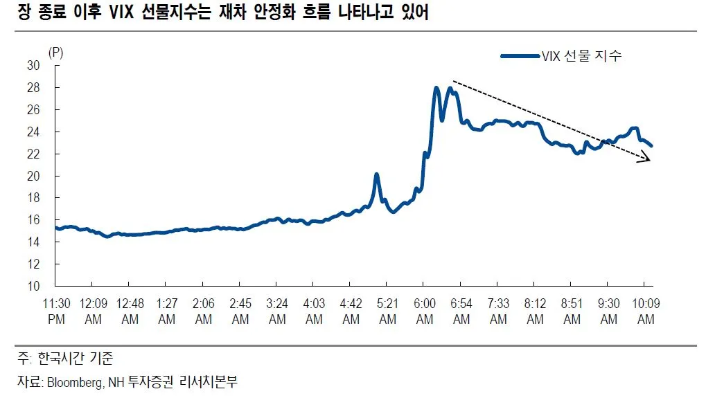 장 종료 후 VIX 지수는 다시 안정세를 찾고 있습니다. 즉, 어제와 같은 투매가 또다시 반복될 가능성은 낮아 보입니다.
