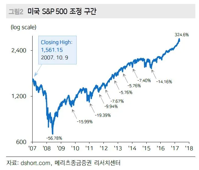 하지만 지난 2년 어땠을까요? 아래는 미국 S&P500의 조정구간입니다.