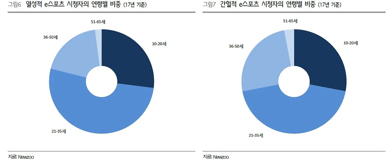 E-SPORTS의 주요 시청자 수는 10-35세 연령입니다. 전체의 80%에 달 할 정도로 압도적입니다. IOC의 고민을 완벽하게 해결해 줄 콘텐츠임에 틀림없습니다.
