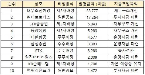 대우조선해양, 현대로보틱스, STX 중공업, 대규모 유상증자가 있었기 때문이다.