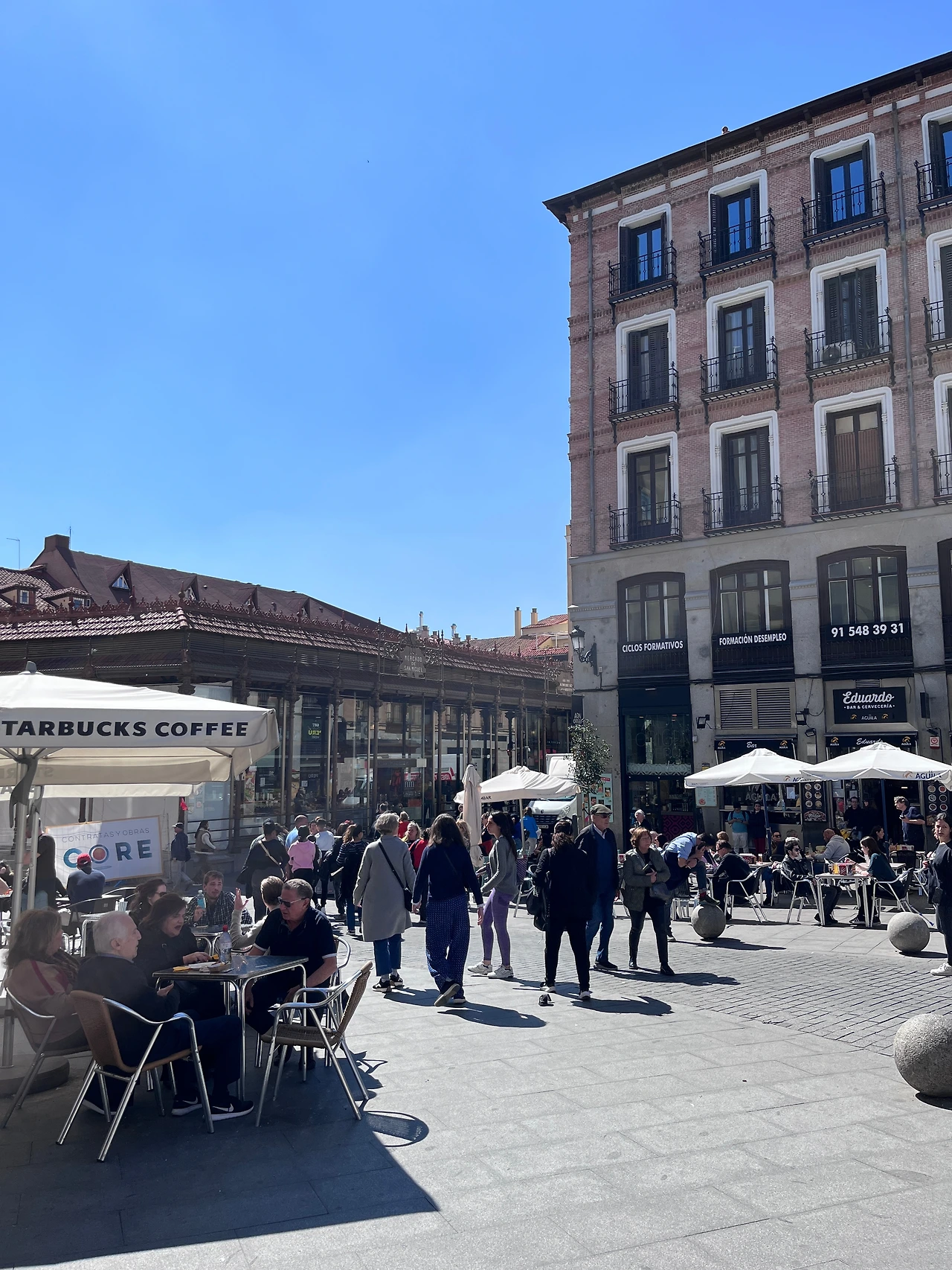 산 미구엘을 나와 다시금 마드리가 쏟아내는 태양줄기를 받으며 광장 쪽을 향해본다. 1분 남짓한 이 거리는 또 엄청난 설렘을 준다. 광장이 펼쳐지기 직전의 노란 아치와 그 속에 살짝 보이는 빨간 벽돌. 몇 걸음만 더 걸으면 그곳에 도착하는 것이다.