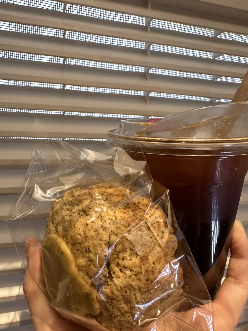 그렇게 저는 먹고 싶은걸 다 가졌고, 그날 점심은 스콘과 시원한 아이스아메리카노였습니다.