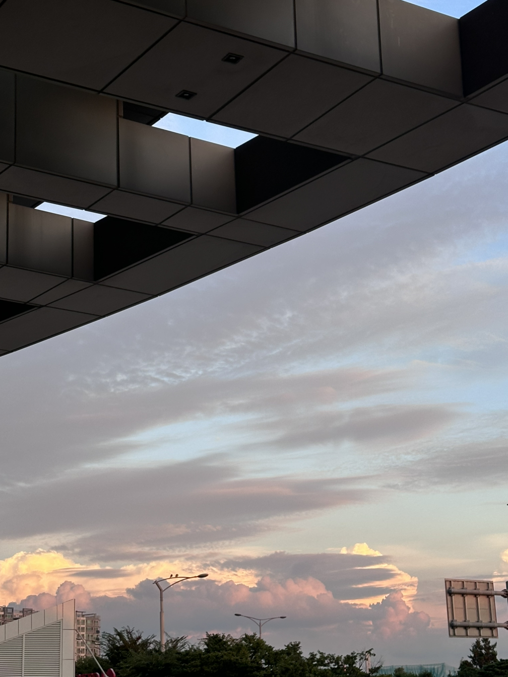해는 지고 있었고, 아침과 같이 구름이 많았고, 하와이 같았다.