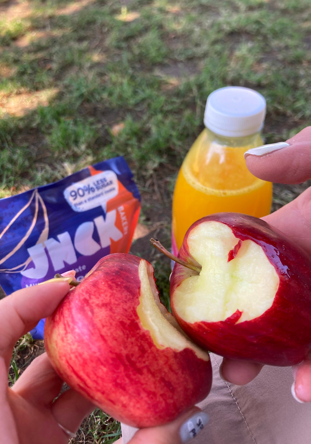 비스킷과 과일, 오렌지 주스를 샀다.