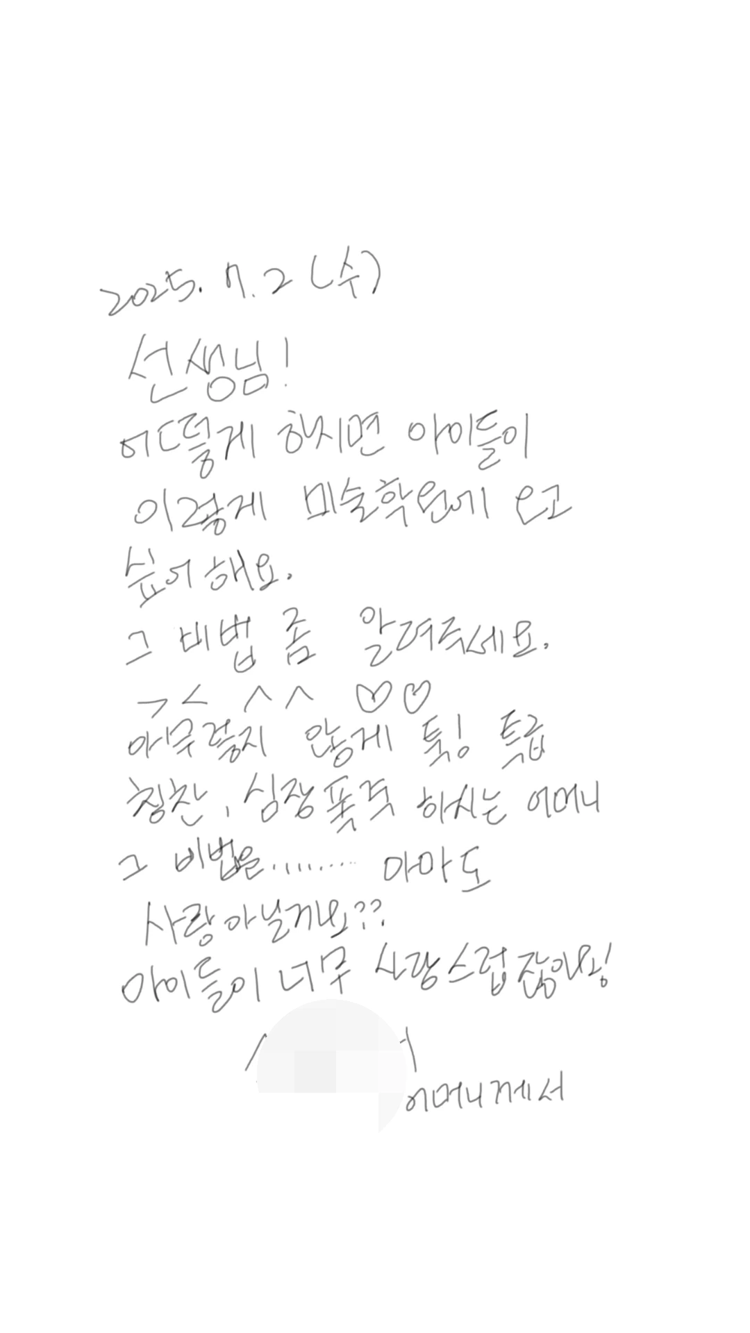 2025년 여름 방학 때도 잊지 않고 미술학원을 찾아왔다.