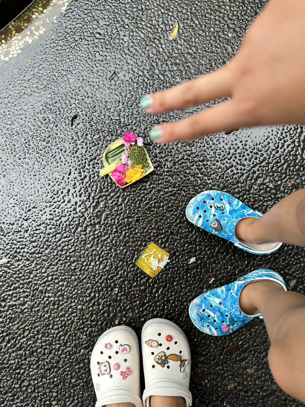 우리는 오늘 하루도 무사하게 보내게 해달라고 기도선물 받은 행운의 여행자들이니 좋은 일들만 가득할 거야! 하고 아이랑 쫄딱 젖은 채로 우붓의 논길을 걸었다.