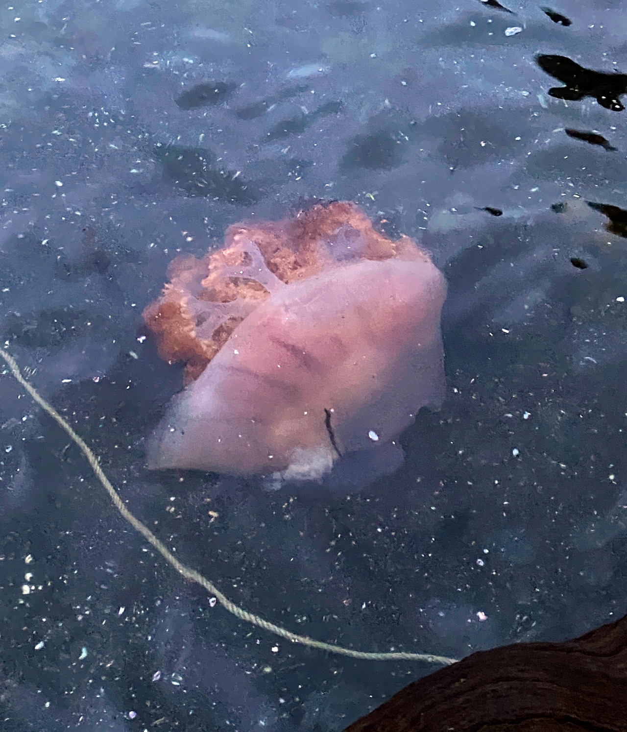 안타깝게도 인류는 화석연료 남용으로 인해 환경위기를 불러왔는데, 그 현실을 성산일출봉 여행에서도 목격할 수 있었다. 성산일출봉 북서쪽 해안인 우뭇개에 함께 내려갔다가 노무라입깃해파리를 발견한 것이다. 동중국해 등 따뜻한 바다에 서식하던 이 맹독성 대형 해파리가 해수온 상승 때문에 한반도 해역에도 자주 출현하고 있는 실정이다. 거대 해파리가 둥둥 떠 있는 현장에서 나는 기후위기 1번지로 불리는 제주 연안의 심각한 상황을 외국인들에게 알렸다.