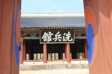 선들선들 경내를 둘러보고 있는데 어떤 여행자 일행이 ‘洗兵館(세병관)’이라고 적힌 중앙 현판의 크기가 건물 크기에 어울리지 않게 너무 크지 않은가 하고 의아해 한다. 36대 통제사인 서유대의 육중한 필체로 쓰여 있는 세병관 현판은 가로 652㎝, 세로 243㎝ 규모로, 임금이 사는 경복궁의 광화문 현판(428㎝, 173㎝)보다 크다.