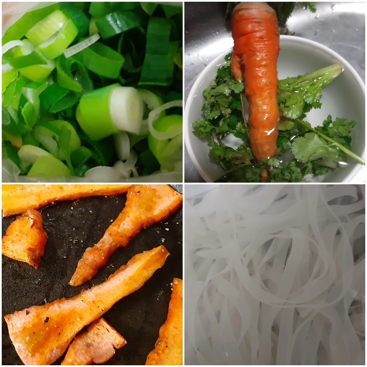 집에 오자마자 재료를 손질하고 바로 음식을 해 먹으려 했는데 할 일이 많아 3일이 지나서야 겨우 요리를 할 수 있었다. 파는 씻어서 송송 썰어 냉동실에 보관하고 당근은 길게 편으로 썰어 올리브유와 소금, 후추를 뿌려 주물팬에 구워 먹었다. 채소 구이는 잘하면 스테이크보다 맛있다는데 나는 아직 잘 모르겠다. 나중에 채소 모음 구이를 해봐야겠다. 당근은 카로틴 색소가 있는데 지용성이라서 기름에 볶아 먹는 게 좋다. 당근의 주황색과 검은 후추가 뿌려진 색의 조합이 이뻤다.