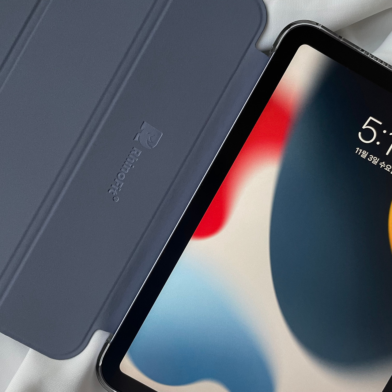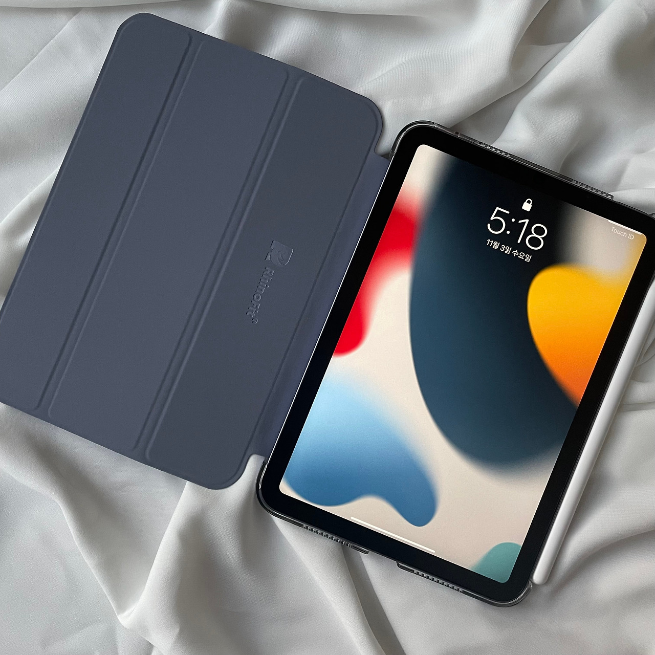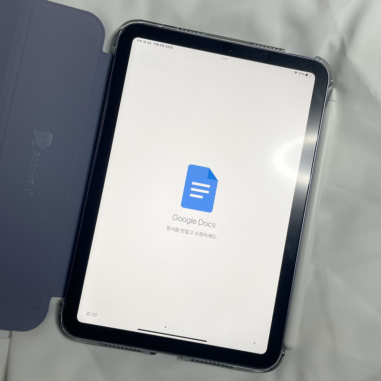 무게는 293g 정도로 상당히 가벼워요. 미니 시리즈의 이전 기종인 아이패드 미니 5세대가 와이파이 모델 기준 300g이었거든요. 기기 자체가 가볍다 보니, 플립 케이스를 끼웠는데도 부담이 없었어요. 유리손목이거나 가볍게 들고 다닐 만한 패드를 찾고 있다면 훌륭한 기기라고 생각해요.
