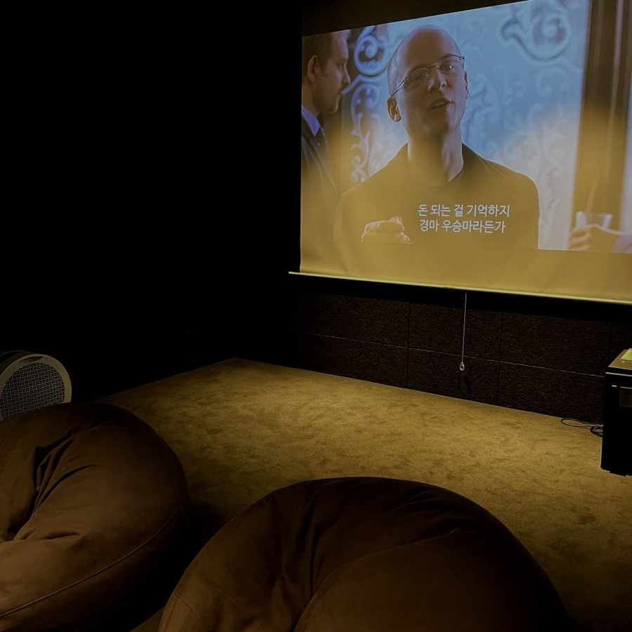 마지막으로 빈백에 앉아서 영화를 볼 수 있는 시네마룸과, 조명과 삼각대가 구비되어 있어 영상 촬영에 딱인 크리에이터스룸이 있어요. 이런 공간은 매월 부여되는 크레딧을 사용해 예약한 뒤 이용할 수 있는데, 어플을 통해 예약 현황을 확인하고 쉽게 신청/변경할 수 있어 부담 없이 활용할 수 있었어요. 다만 주말 저녁부터 새벽까지...... 시네마룸 예약 풀이었습니다,