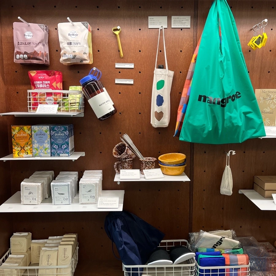 4층 주방과 세탁실 옆에 위치한 맹그로브 스토어의 첫인상은, '환경과 건강을 생각한 흔적이 느껴진다'였어요. 특히 에디터가 사랑하는 해피문데이, 잇츠베러 크래커, 오프라인에서는 한 번도 본 적 없었던 현미곤약밥 (곤약밥 입문용으로 "강추") 까지...... 그저 "극락"