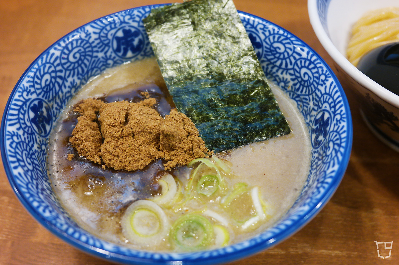 이곳의 츠케지루는 돼지, 닭, 어패류 등을 넣고 푹 끓인 육수를 베이스로 한다. 여기에 차슈와 죽순 등을 더하고, 감칠맛의 정점을 찍을 어분을 가득 넣어 완성했다. '농후' 츠케멘이라는 이름답게 국물 맛이 매우 진하다. 특히, 국물 위에 올라간 어분의 존재감이 상당하다. 국물을 뜬 숟가락을 입으로 가져가기도 전에 어분의 진한 향이 강하게 느껴질 정도다. 찍어 먹는 용도이다 보니 간은 센 편이다. 짭짤하고 걸쭉한데, 말린 생선의 강렬한 감칠맛을 담고 있다. 쉽게 잊혀지지 않는 맛이다.