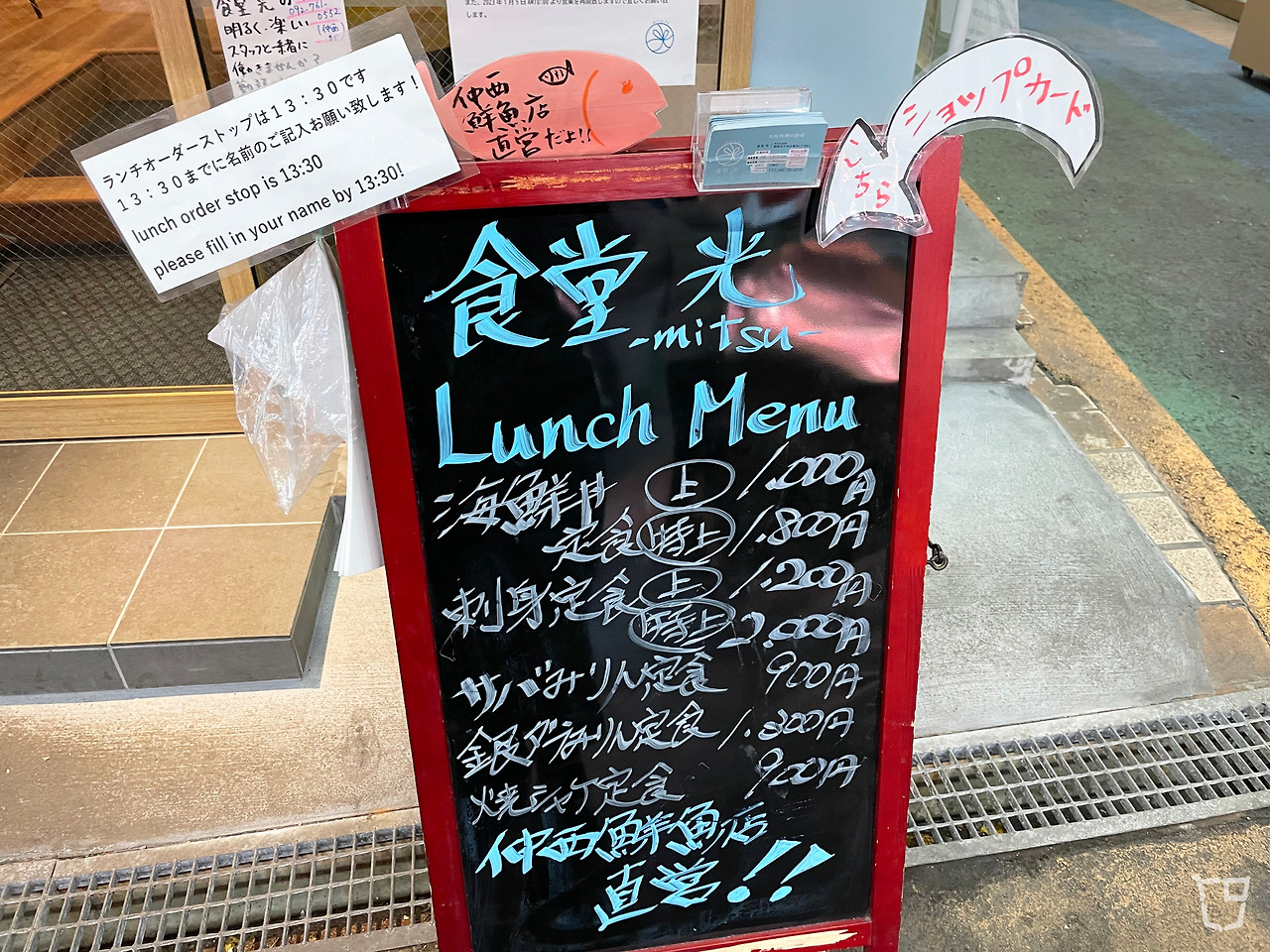 맞은편 생선 가게에서 손질한 신선한 생선으로 다양한 요리를 선보이는 이곳. 회, 초밥, 해산물 덮밥, 튀김 등 여러가지 요리를 맛볼 수 있다. 점심에는 해산물 덮밥 등의 식사류를, 저녁에는 안주류를 준비해 판매한다. 점심시간을 이용하면 해산물 덮밥을 좀 더 저렴하게 즐길 수 있으니 참고하자.