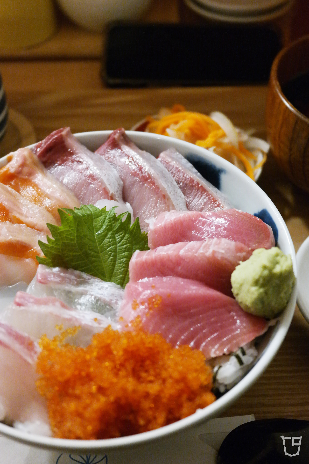 카운터석에 앉아 따뜻한 차를 홀짝이며 요리에 온 힘을 쏟는 주방장의 모습을 보고 있으면, 어느새 근사한 해산물 덮밥 세트가 나온다. 세트는 해산물 덮밥, 일본식 달걀찜인 '자완무시', 생선을 이용한 간단한 찬 한 가지와 된장국으로 구성돼 있다. 그릇 위에 꽃이 핀 듯, 정갈하게 놓여진 생선 회의 아름다운 색감이 시선을 사로잡는다. 젓가락을 빼 들고 꽃잎처럼 썰린 회를 밥과 함께 떠먹는다. 회덮밥처럼 비비지 않는 것이 핵심이다.