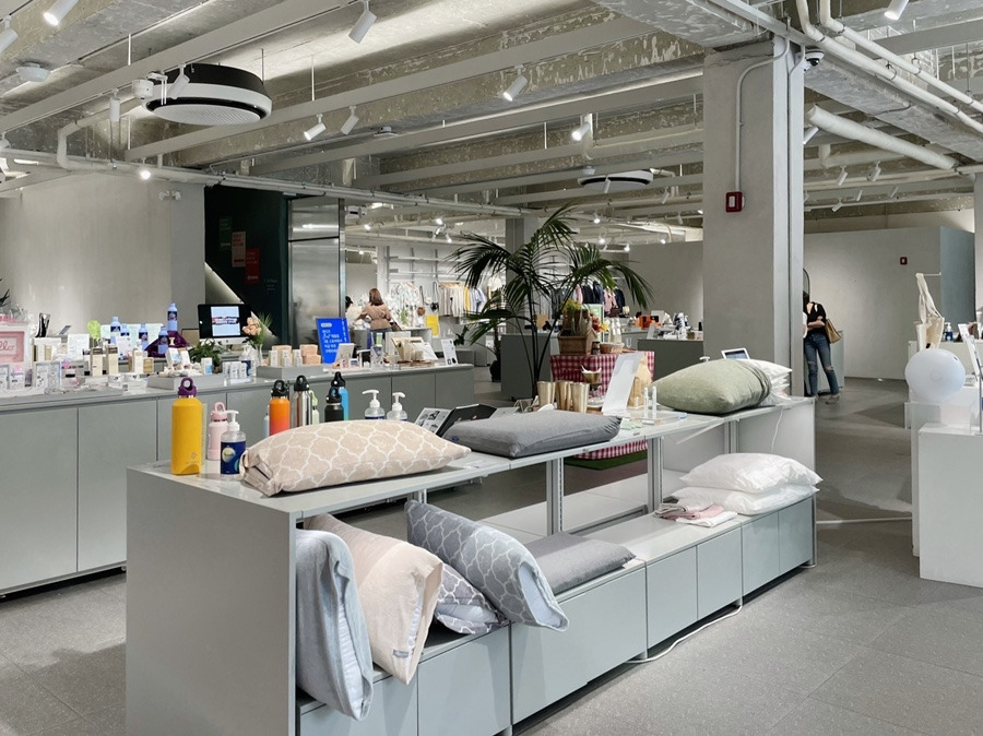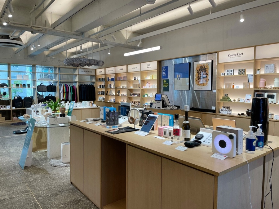 본격적으로 공간 와디즈에 들어섰어요. 전시 공간은 총 2층으로, 1층에서는 현재 펀딩 진행 중인 프로젝트를, 2층에서는 펀딩이 완료된 이전 프로젝트 제품을 체험하고 구매할 수 있답니다.