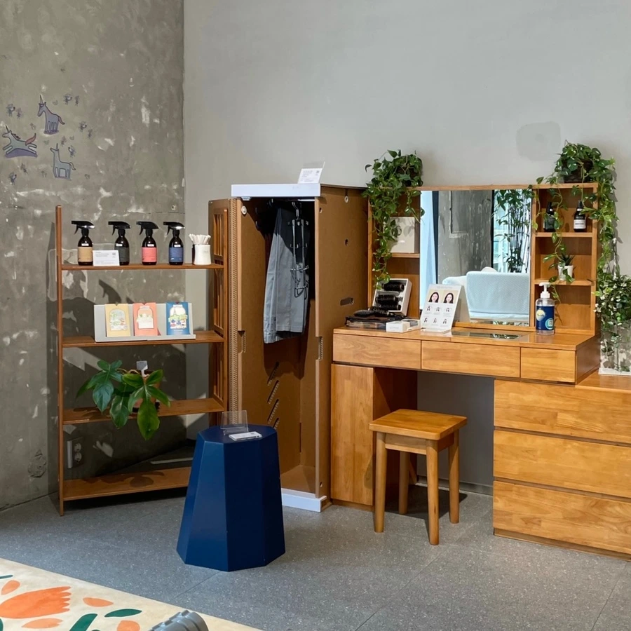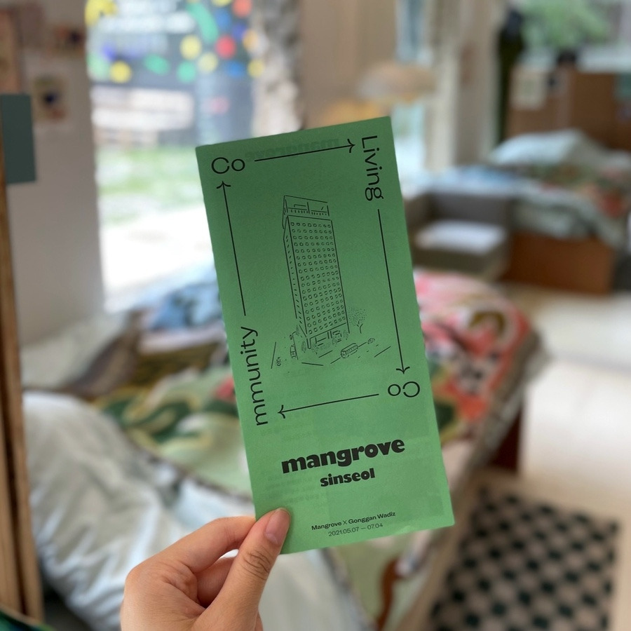 가장 먼저 보이는 것은 코리빙 하우스 맹그로브의 1인실 싱글룸을 재현한 공간. 코리빙은 개인 공간과 공유 공간이 공존하는 주거 형태로, 도시 주택난 해소를 위한 대안으로 떠오르고 있어요.
