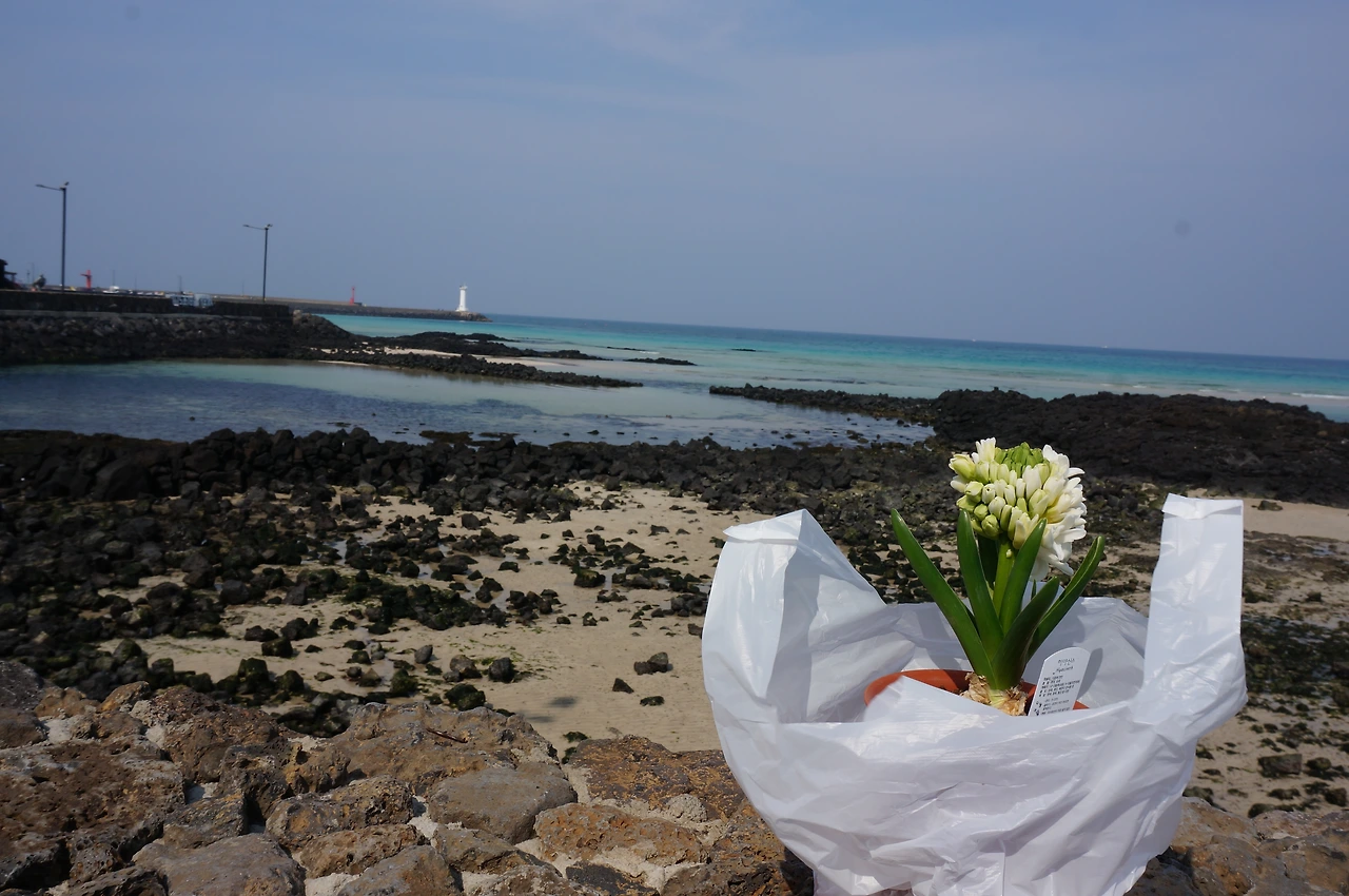 누가 봐도 관광객 모양새지만 동네주민인척 어슬렁어슬렁 여기저기 골목골목 목적 없이 돌아다니다 꽃집 앞에서 하얀 히야신스를 발견했다. 작년에 키우던 다양한 색의 히야신스를 땅에 묻어뒀다가 올 2월에 화분에 다시 심었는데 비실비실 연약해서 걱정 한가득 남겨두고 왔는데, 튼튼한 구근에 풍성한 히야신스를 보니 희망차 보인다. 히야신스와 함께 숙소로 돌아와 적당한 곳에 놓아둔다. 화분에 "희야"라는 이름을 적어주고 '한 달 동안 같이 잘 살아보자.'라는 작은 문구도 적어본다.