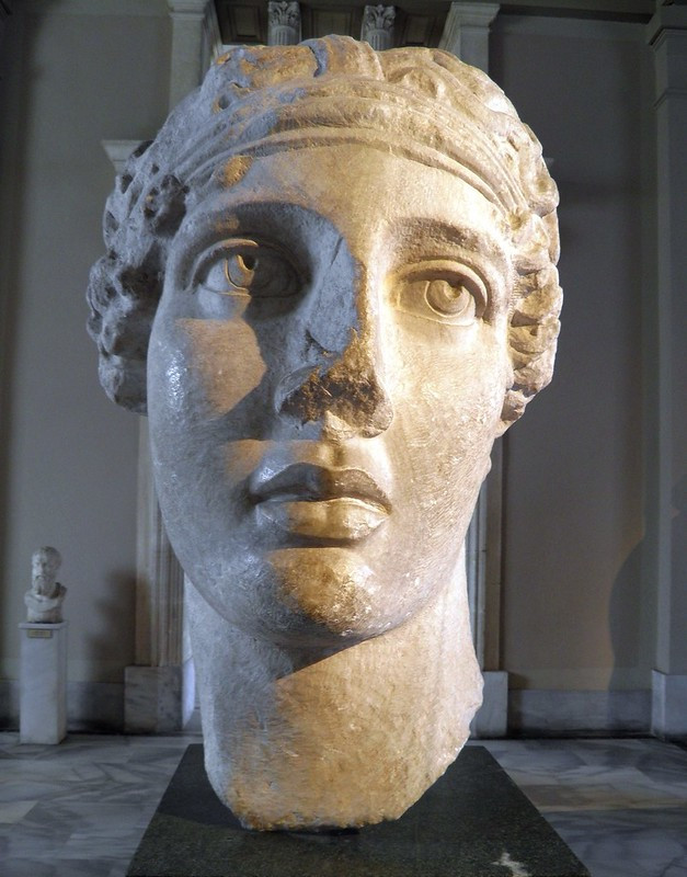 사포 두상(헬레니즘 시대 작품을 로마시대에 복제. 이스탄불 고고학 박물관)("Head of the poetess Sappho", www.worldhistory.org, Uploaded by Carole Raddato, published on 05 March 2014, CC BY-SA 2.0)